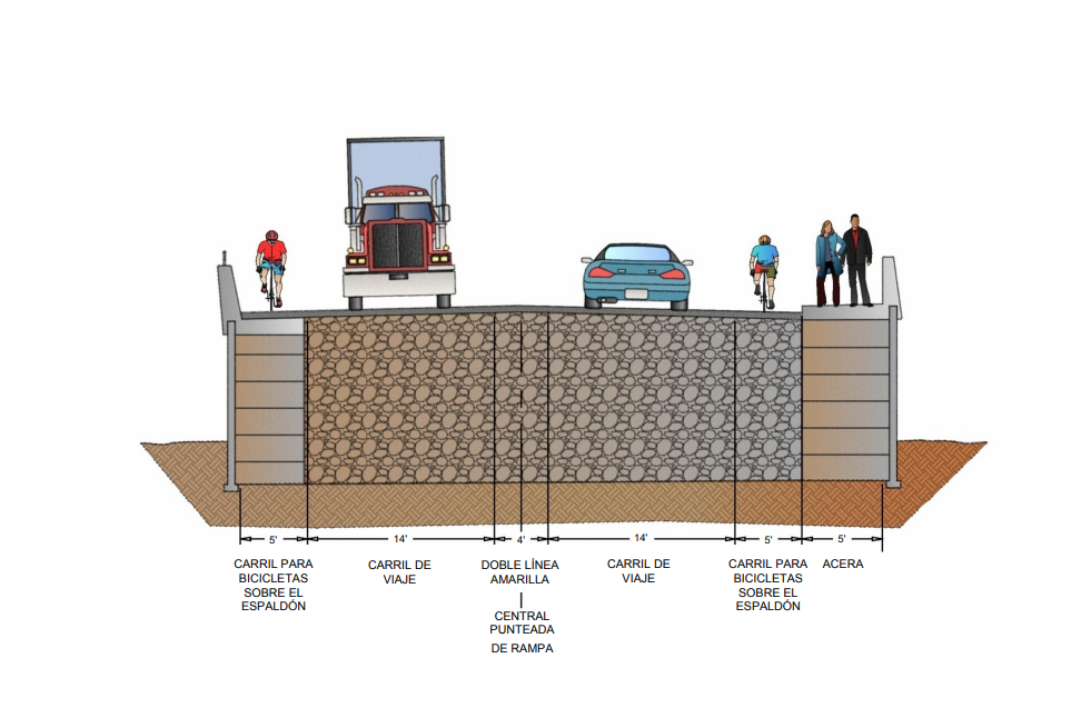 Vista transversal del paso elevado con acceso para ciclistas y peatones.